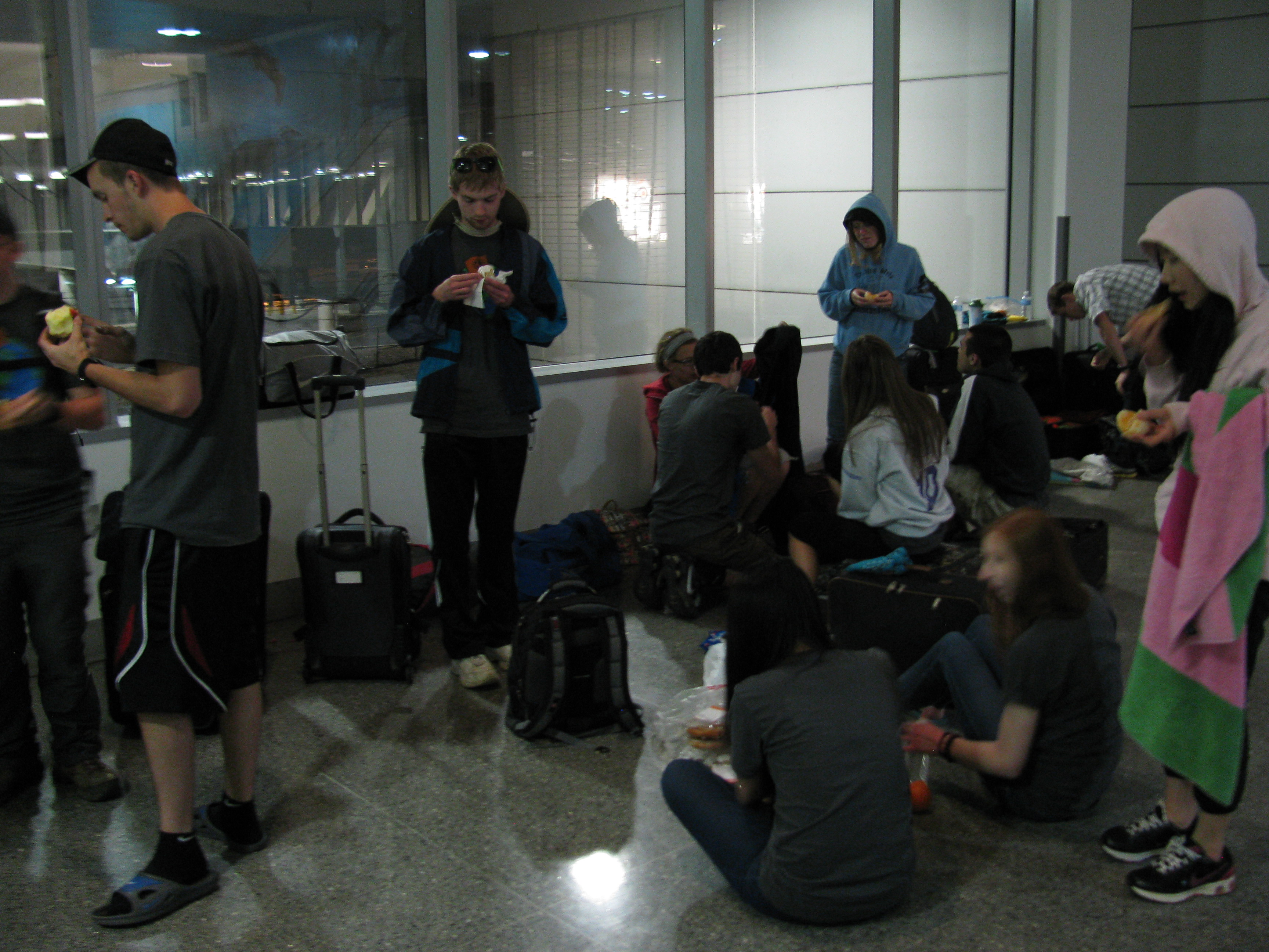 We finally began checking luggage around 4AM and then went thru security…and yes Macbeths, I was Adam’s guardian so he could get a pat down. There are no pictures of that because I was also having to show security all thru my carry-on. I told them I’d get hung up. But all went well and we made it onto the plane in PHL.