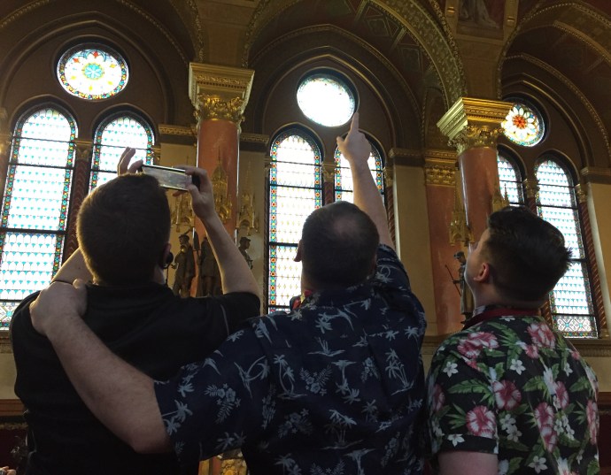 The parliament building was modeled after the Houses of Parliament in London. However, after WWII, when Hungary was divided up between the victors, the country did not need such a large Parliament House. So currently only half of the building is actively used. We toured the inactive (unused) portion. This portion is also where the Hungarian Crown Jewels are displayed – though we were not permitted to take pictures of them. If you wish to know what actually happens if you disobey this no-photographing-the-crown-jewels rule, just ask Ross McCracken. (Great story.)