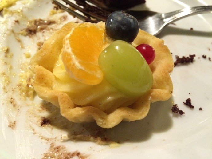 Just when you think you cannot possibly stuff yourself with any more deliciousness, it’s time for dessert! Hopefully, you’re not allergic to dairy or there could be some issues. However, if you can hold down your lactose, there is cheesecake galore! Other desserts include peach sour cream squares, giant custard filled cream puffs, chocolate mousse stuff, brownies (for our traditional folk), and more cheesecake. There are also these dispensers of a mysterious scrumptiousness that leaves one thinking, “Is it a slushie? Is it ice cream? I DON’T KNOW BUT IT’S WONDERFUL.”