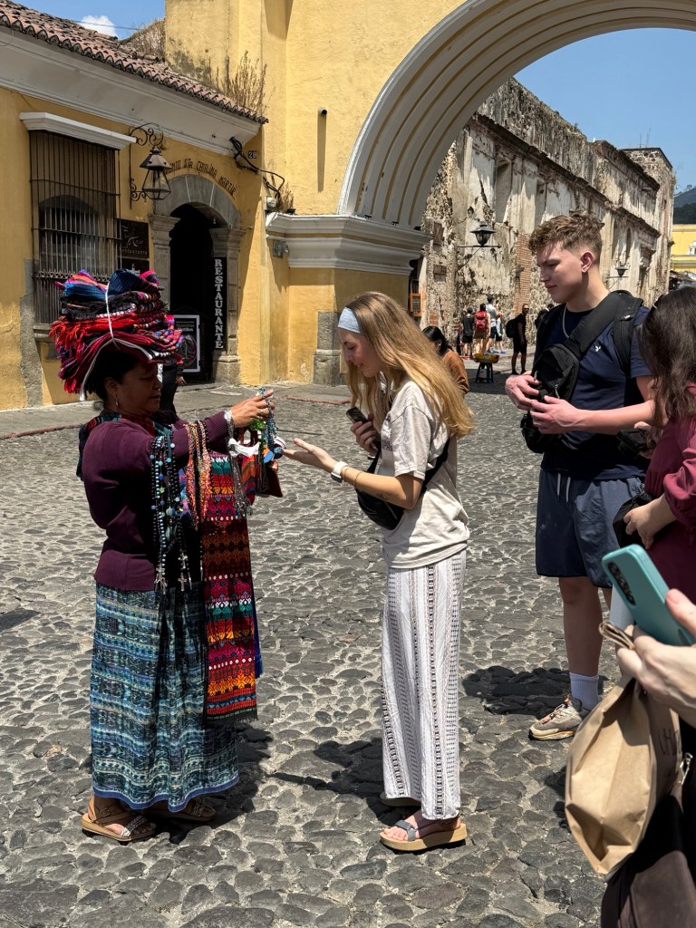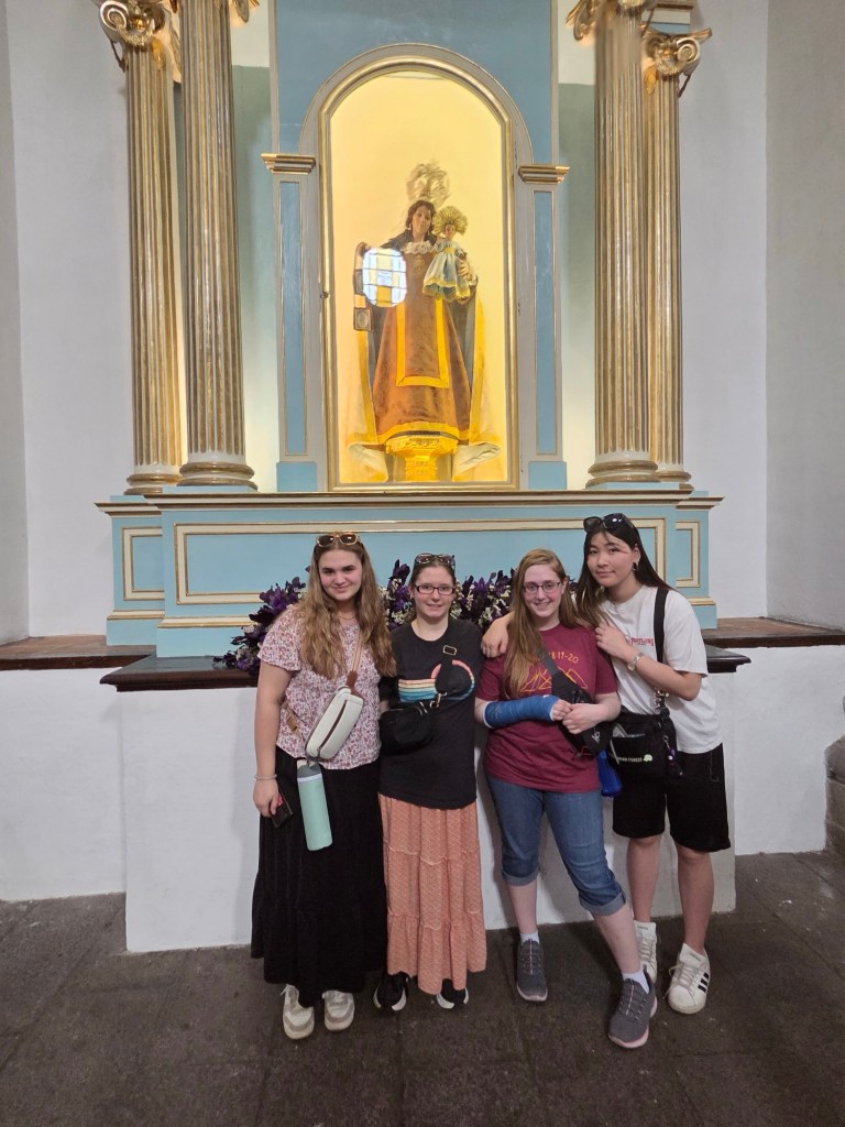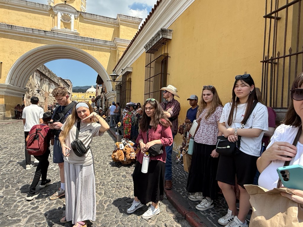 Today was our tourism day, but it became so much more than sightseeing. It was a day to stand in awe of God and His incredible creation. Antigua’s town square was absolutely stunning, vibrant, colorful, and full of life. It felt like one of those rare places where people simply come to be: together in community, surrounded by beauty and joyful energy. Bright colors framed the perfectly white church, while music, laughter, and conversation filled the air. All of it rested at the base of a towering volcano. It was a true blessing to witness how God has created such breathtaking places, diverse cultures, and wonderful people.